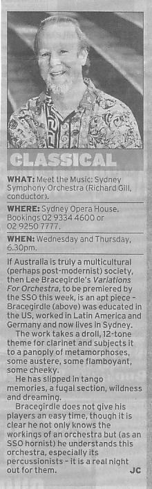 on stage for the world premiere of Variations for Orchestra, he will take a seat in he concert-hall stands.
